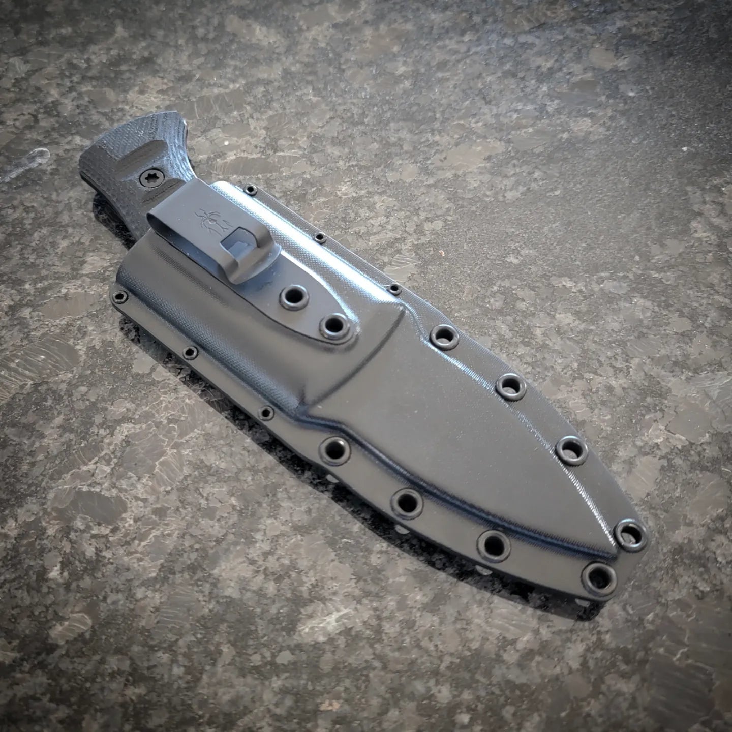 - Kydex deep carry sheath with DCC clip mounted centerline.